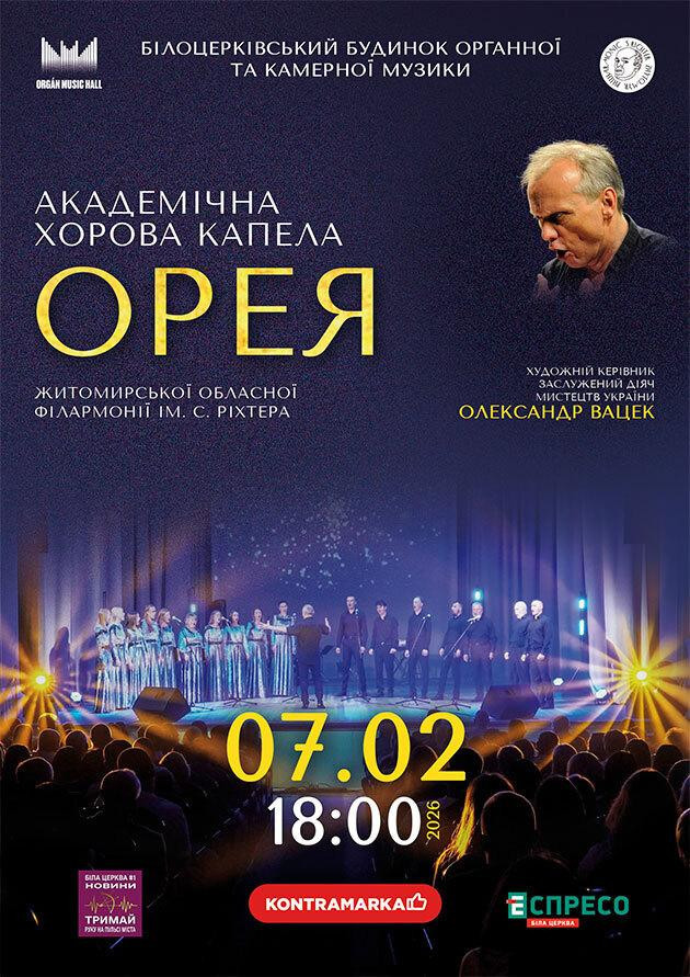 Академічна хорова капела «Орея» — один із найяскравіших хорових колективів України, відомий своєю високою виконавською майстерністю та емоційною подачею. У програмі концерту — твори різних епох і стилів, що поєднують глибину звучання, драматургію та живі емоції. Вечір, який подарує справжнє музичне враження та надихне слухачів.